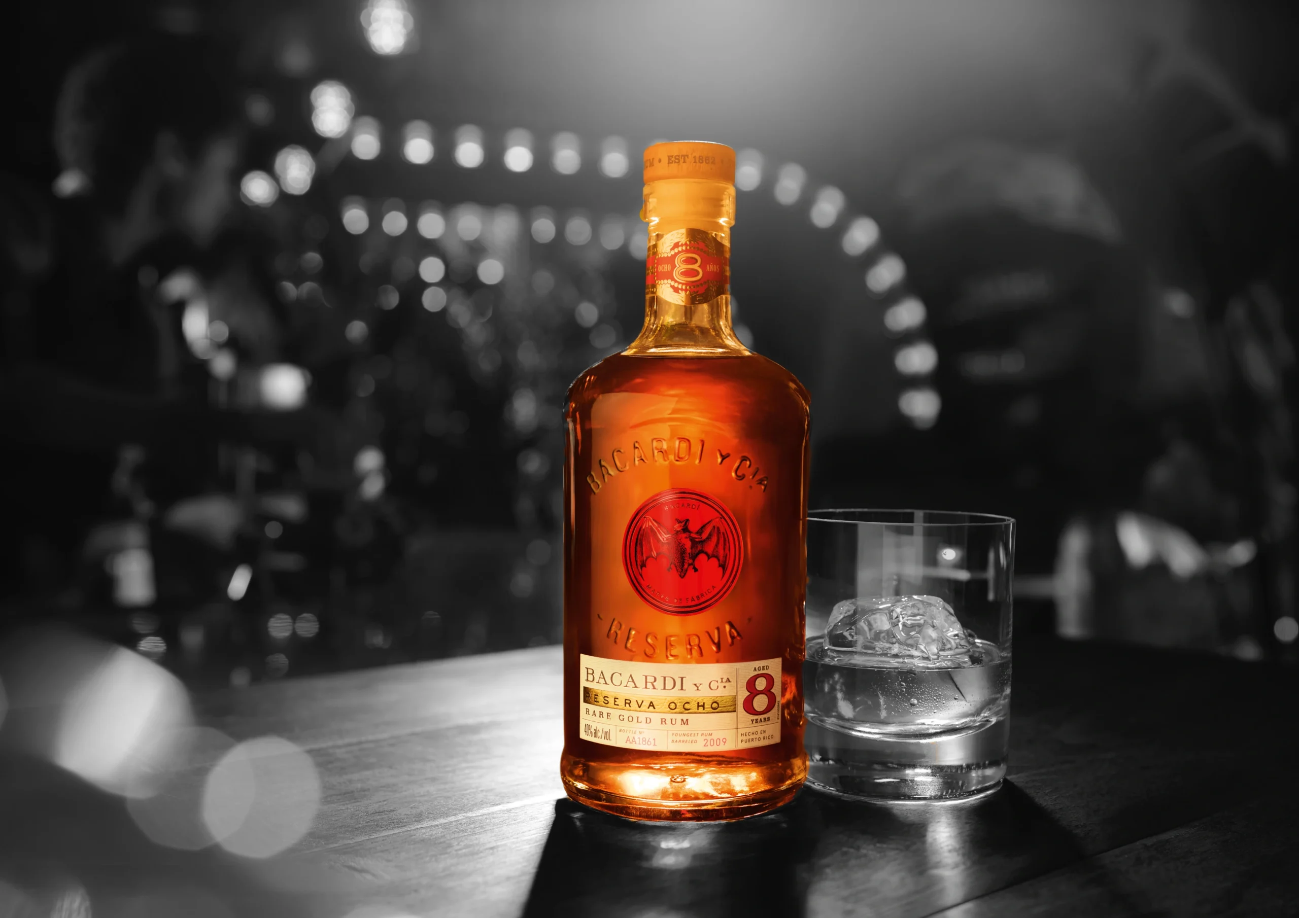 BACARDÍ Reserva Ocho ist ein komplexer goldener Rum mit einem intensiven, vielschichtigen und weichen Geschmack nach Trockenfrüchten, Gewürzen und Vanille mit feinen Eichenauszügen.